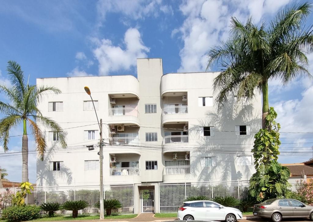 apartamento com 02 quartos, sendo 01 suíte (com ar condicionado nos dois quartos), banheiro social, sala com sacada, cozinha com armário na bancada da pia, lavanderia e vaga para 01 carro e a área comum é composta de área de lazer com churrasqueira, banheiros, lavanderia e pátio.