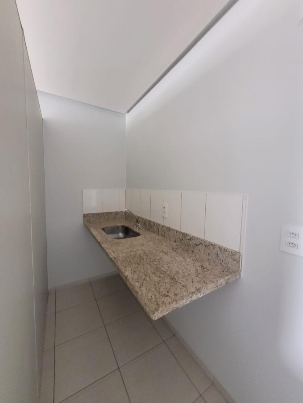 Sala comercial para locação com 51 Mt, sendo recepção, sala reservada, banheiro, copa, lavanderia e sacada.