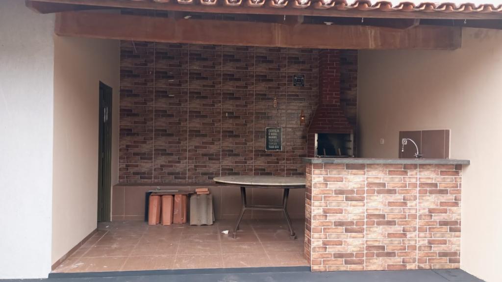 Casa com 03 quartos, sala, cozinha, banheiro social, área de lazer com churrasqueira e bancadas, banheiro na área, lavanderia coberta, despensa, garagem para 03 carros.
